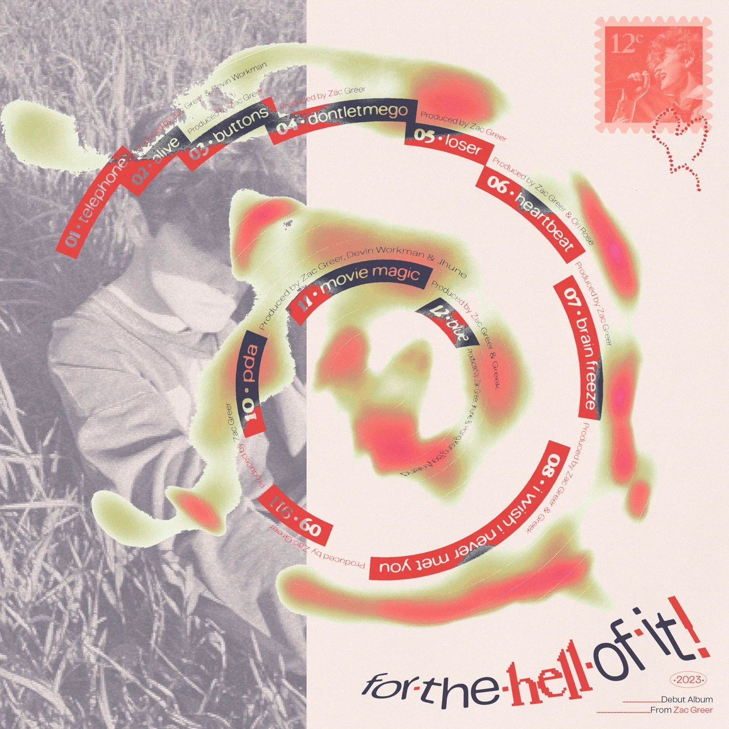 Concept back vinyl cover for the album ‘for the hell of it’ by Zac Greer.